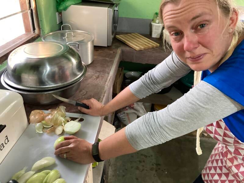 👆 Chopping Zambian onions for the teams dinner - so strong you can taste them as you cry!!