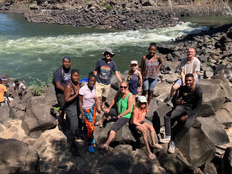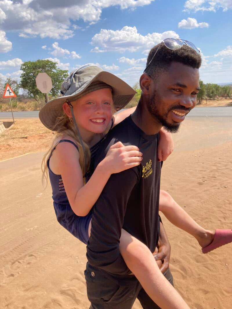 Livingstone is also incredibly hot! Today will likely reach around 37 degrees and that seems about average at the moment. By the time we'd done our safari yesterday (seeing plenty of Giraffe and rhinos) and then explored the Vic Falls with our team (many of whom hadn't seen them before) the sun was at its highest and the walk home was sweltering. Hannah was definitely glad for a piggy back👇🏻